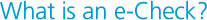An electronic check, or e-Check, is an electronic version of a paper check, used to process a payment online. Any renter with a checking account can pay by e-Check through RentPayment. To make a payment for rent or move-in expenses by e-Check, renters simply provide RentPayment with their checking account and routing numbers. RentPayment debits the funds directly from the renter's checking account. Paying by e-Check is convenient for renters who no longer have to deliver a rent check to the leasing office. For property managers, e-Checks eliminate the administrative work of processing paper checks.